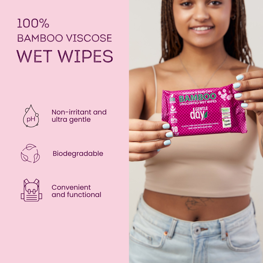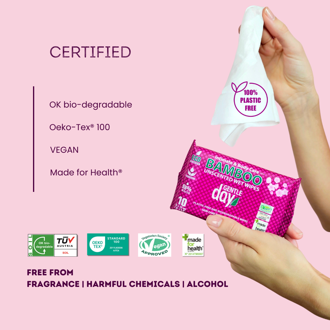 Gentle Day Bamboe Intieme Doekjes – 10 stuks | Zacht, veilig en biologisch afbreekbaar | Voor intieme en dagelijkse verzorging